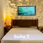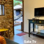 Artesanal, aconchegante, à beira da lagoa. Desfrute a exuberância da natureza da Lapinha da Serra, com acesso privativo à lagoa, num espaço original e criativo. A casa comporta de duas até seis pessoas, possui cozinha completa, de pedra, em ambiente separado da área íntima, que combina pedra e adobe, sendo composta por sala com sofá e TV, duas suítes sendo cada uma com uma cama de casal. Integra-se à área íntima, de forma singular, a casa na árvore, de madeira, composta por dois quartos, sendo um de solteiro e outro de casal.
