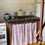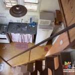 Ambiente comum com sala, copa, cozinha (fogão a gás, geladeira, microondas, torradeira, liquidificador, panelas, pratos, copos e talheres);