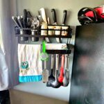 Armário de madeira com utensílios de cozinha