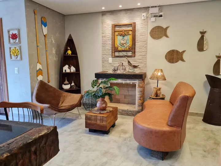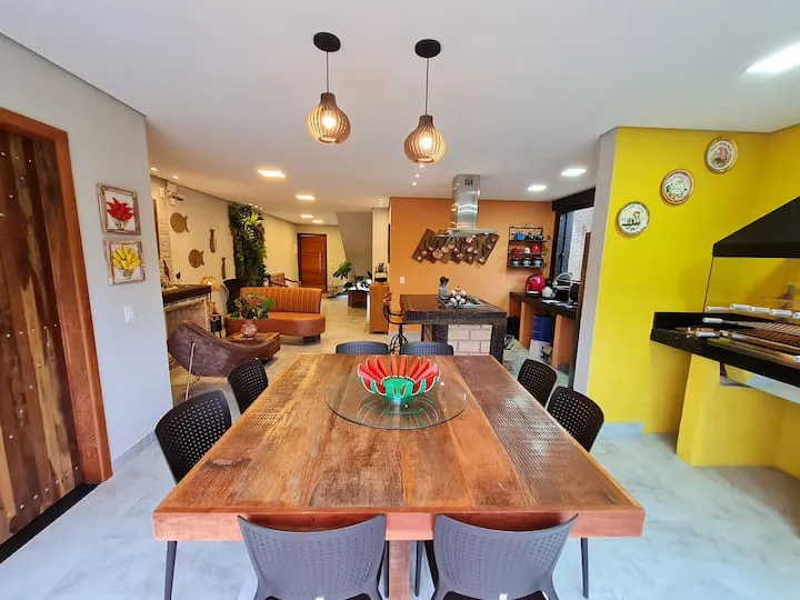 Com capacidade para até 12 hóspedes em 4 suítes espaçosas, a casa combina conforto e contato direto com a natureza. A localização estratégica permite que você explore os melhores passeios na Lapinha: fica a apenas 10 minutos a pé da ponte, da Cachoeira do Boqueirão e da Cachoeira do Rapel. Restaurantes e pontos turísticos estão a curta distância, tornando sua estadia ainda mais conveniente.